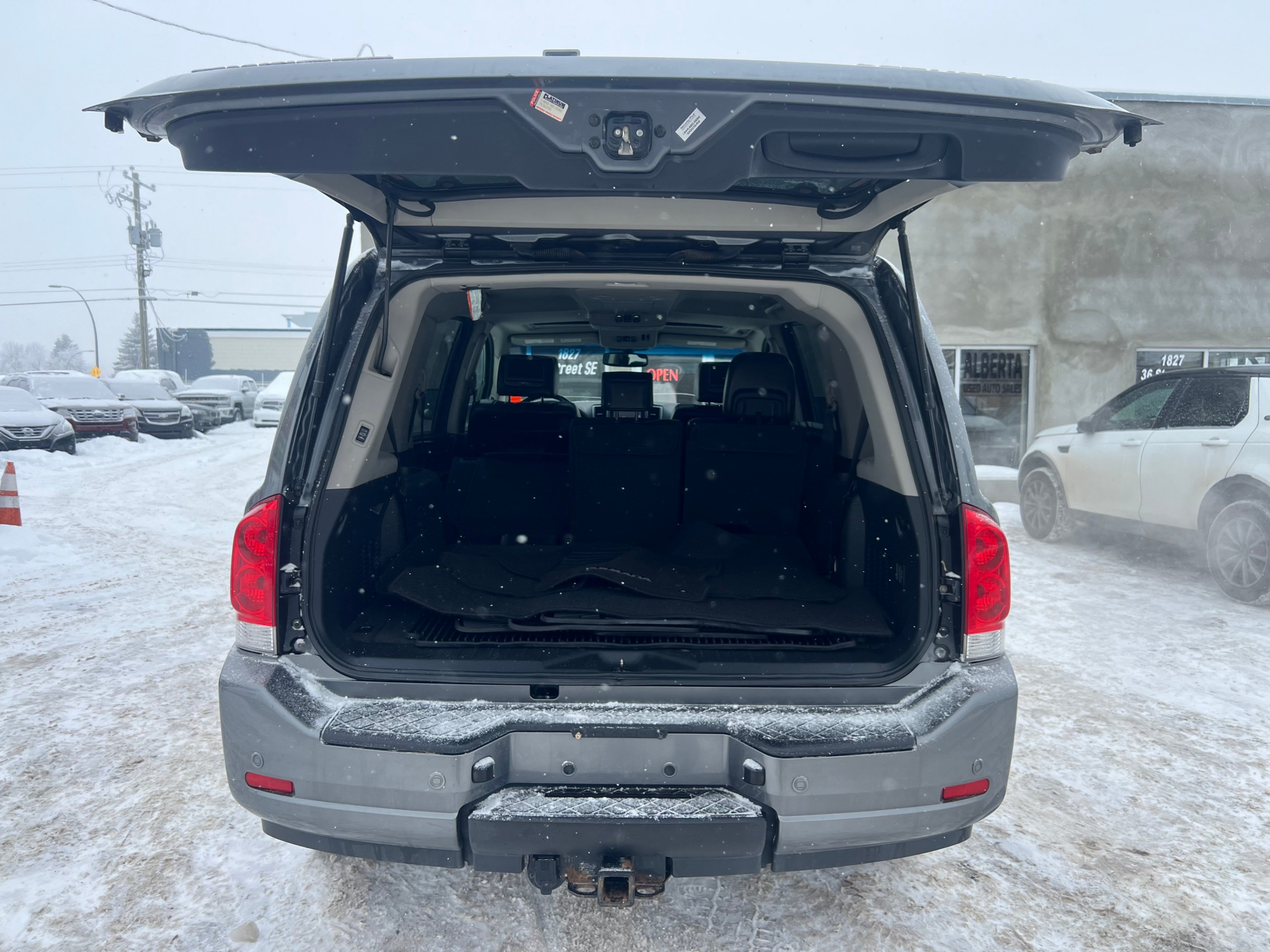 Selling this gorgeous loaded 2014 Nissan Armada Platinum Edition with 191717 kms on it, which is 8 seater with lots of room and options, in a great mechanical condition. Automatic transmission, 5.6 litre V8 engine. Active status (No reported accidents). Comes with recent mechanical fitness assessment and Carfax with 23 service records. Just detailed. Good Bridgestone tires.